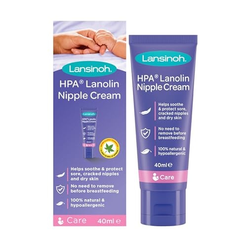 Lansinoh HPA® Lanolin nipple cream provides relief to sore and cracked nipples. This 40ml tube is perfect for at home or in your changing bag, making sure you always have it available when breastfeeding. Composed of an ultra-purified grade of lanolin, the cream is ethically sourced and 100% natural without any preservatives or additives. HPA® Lanolin is naturally hypoallergenic and approved by the British Allergy Foundation meaning you can breastfeed your little one without removing the cream. When applied on sore cracked nipples, it will provide them with a perfect moist wound-healing environment; when cracked tissue is re-hydrated, it will heal without the formation of a scab or crust. Comforts sensitive skin, nappy rash, itchy stretch marks, burns, abrasions, dry skin patches and can be used as a naturally moisturising lip balm. Awarded Gold in the Mother & Baby awards 2021 for best product for breastfeeding. Pack size: 40ml tube How to use: Wash hands thoroughly. Apply a pea-sized amount of HPA® Lanolin nipple cream after every feed or as often as needed to ensure your nipples are protected and healing in between feeds. How to store: Store at room temperature. Ingredients: 100% Lanolin Made in New Zealand.