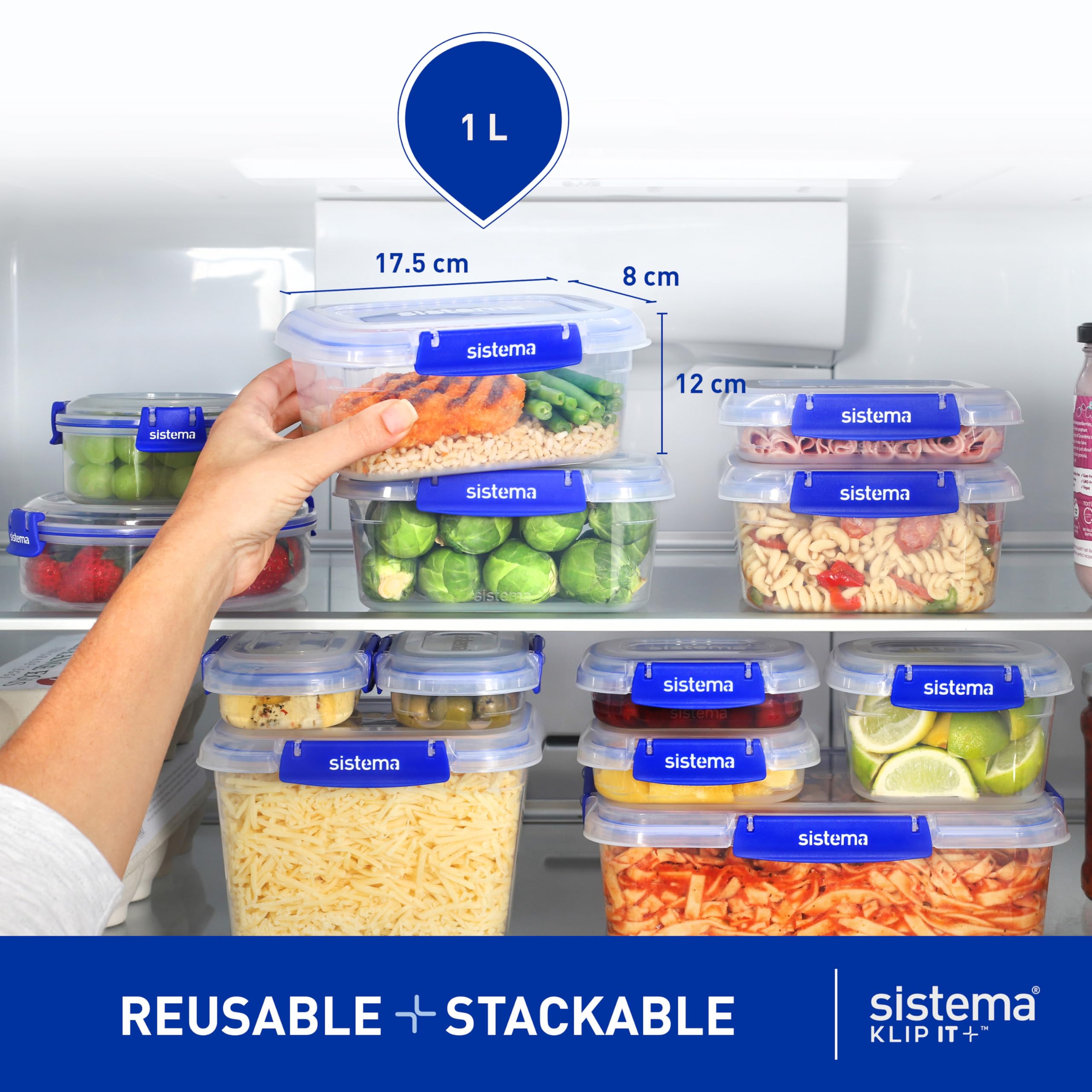 Home Home & Kitchen Sistema KLIP IT PLUS Leakproof Food Storage Containers | 1 L | Airtight & Stackable Meal Prep Containers with Lids | School Lunch Boxes | BPA-Free | 3 Count